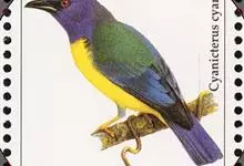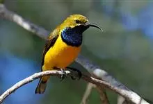 橙腹叶鹎体形大小和金额叶鹎相似,体长16~20厘米。额至后颈黄绿色,其余上体绿色,小覆羽亮钴蓝色,形成明显的肩斑。颏、喉、上胸黑色具钴蓝色髭纹,其余下体橙色。飞羽和尾羽雄鸟黑色、雌鸟绿色。…全部>>