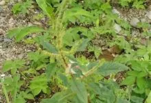 反枝苋是苋科苋属的一年生草本植物。株高达1米;茎密被柔毛;叶菱状卵形或椭圆状卵形,先端锐尖或尖凹,两面及边缘被柔毛,下面毛较密;穗状圆锥花序,顶生花穗较侧生者长;花被片长圆形或长圆状倒卵形,…全部>>