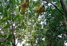 吊瓜树 Benth.)是紫葳科、吊灯树属植物。常绿乔木,高10~15米,枝下高约2米,胸径约1米。奇数羽状复叶交互对生或轮生,叶轴长7.5~15厘米;小叶7~9枚,长圆形或倒卵形。圆锥花序生于小枝顶端,…全部>>