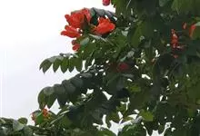 火焰树是紫葳科、火焰树属乔木,树皮平滑,灰褐色。奇数羽状复叶,对生,连叶柄长达45厘米;小叶13-17枚,叶片椭圆形至倒卵形,伞房状总状花序,顶生,密集;被褐色微柔毛,具有明显的皮孔;花冠一侧膨大,…全部>>