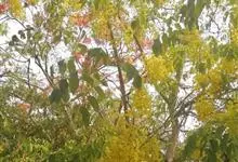 腊肠树:是豆科腊肠树属植物。落叶乔木,高可达15米;枝细长;树皮灰色,老时粗糙,暗褐色。叶长30-40厘米,小叶对生,薄革质,阔卵形,卵形或长圆形,边全缘,幼嫩时两面被微柔毛,老时无毛;叶脉纤细,…全部>>