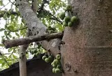 大果榕是桑科榕属的小乔木,株高可达10米;幼枝被柔毛;叶互生,宽卵状心形或近圆形;雄花无梗、匙形、花丝长,雌花生于雌株榕果内,子房白色;榕果簇生于树干基部或老茎短枝上、扁球形或陀螺形,…全部>>