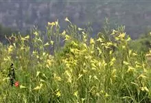 黄花菜 别名金针菜、柠檬萱草等,是阿福花科萱草属的多年生宿根性草本植物。根近肉质,中下部常有纺锤状膨大;叶7~20枚,长50~130cm,宽6~25mm;花葶长短不一,花梗较短,花多朵,…全部>>
