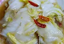 糖醋卷心菜是一道美味可口的传统名菜,属于鲁菜系。酸甜爽口,开胃健脾。圆白菜硬梗剔除、用手掰成片、下开水焯,快速过凉水控干;干红椒切段、姜切末;小火爆香干红椒和姜末、倒入白菜、三分之一白醋、糖、转最大…全部>>