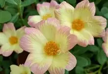丰花月季是蔷薇科、蔷薇属植物。灌木,高0.9-1.3米,小枝具钩刺或无刺、无毛,羽状复叶,小叶5-7片,宽卵形或卵状长圆形,长2.3-6.0厘米,先端渐尖,基部近圆形或宽楔形。具尖锯齿,无毛。…全部>>