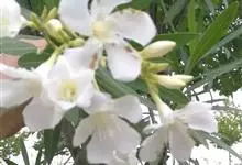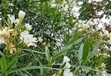 白花夹竹桃是夹竹桃科、夹竹桃属植物夹竹桃的栽培品种。常绿直立大灌木,枝条灰绿色;嫩枝条具稜,被微毛,老时毛脱落。叶3-4枚轮生,下枝为对生,叶面深绿,叶背浅绿色;侧脉纤细平行与中脉成直角;叶柄扁平,…全部>>
