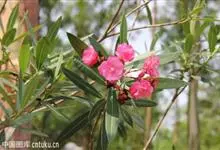 夹竹桃,又名红花夹竹桃、欧洲夹竹桃,是夹竹桃科夹竹桃属的一种常绿直立大灌木,枝条灰绿色,含水液。叶披针形,3叶轮生。聚伞花序顶生,花冠粉红至深红色,花冠漏斗状,有特殊香味。蓇葖果,圆柱形。种子长圆形,…全部>>