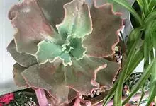 女王花笠,又名扇贝石莲花、女王花舞笠,是景天科拟石莲花属的多肉植物。由美国加利福尼亚州的育种师Dick Wright于1964年培育。特征是呈大波浪状褶皱的红色叶缘和气质高贵的粉紫色调。…全部>>