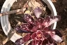 黑法师是景天科莲花掌属植物,自然界不存在分布。紫黑色的叶片呈莲座状层叠排列,给人以庄重神秘之感,观赏价值高。…