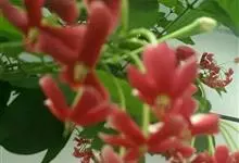 使君子 Jongkind)是使君子科、使君子属攀援灌木,叶对生,椭圆形,两面均被灰白色柔毛。穗状花序,倒挂下垂。花期夏秋。果有五棱,熟时黑色,种子白色。分布于印度、缅甸、菲律宾和中国。喜温润,深根性,…全部>>