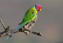 紫红头鹦鹉是鹦形目鹦鹉科的鸟类。鸟体为绿色,头部中间为红色,下颏下方延伸到脸颊下方,环绕整个颈部有一条黑色的环状羽毛,并连接一条蓝绿色的条状羽毛。…全部>>