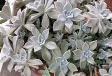 胧月 E.Walther)是景天科,风车草属多肉植物,常绿蔓生亚灌木,叶肥厚无柄,灰蓝色,阳光充足时呈粉红色,叶片枝顶簇生成莲座状,乳白色,花冠5裂,上有紫红色斑点,雄蕊两轮排列,花药鲜红色,…全部>>