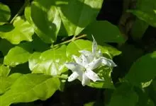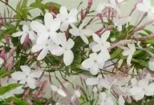 素馨花,木犀科素馨属多年生的攀援灌木植物。攀援灌木,小枝圆柱形,具棱或沟;叶对生,叶轴常具窄翼,小叶片卵形或长卵形;聚伞花序顶生或腋生,花序梗长,苞片线形,花萼无毛,裂片锥状线形,花冠白色,…全部>>