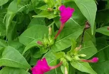 即紫茉莉,英文名:Four-o'clock,Marvel of Peru,为紫茉莉科、紫茉莉属多年生草本植物,一年生栽培。株高50~80cm。根粗壮,茎多分枝而散生。叶对生,卵形或心脏形。花数朵簇生…全部>>