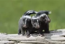 臭鼬是食肉目鼬科鼬属哺乳动物。体型与家猫相仿。全身被毛为黑色,身体两边有白色条纹;前额有一条较窄的白色条纹;尾巴呈丛毛状,有时尖端为白色。寿命为7—8年。臭鼬广泛分布在北美洲墨西哥以北的广大地区,…全部>>