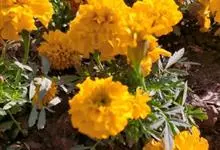 万寿菊是菊科万寿菊属一年生草本植物,别名孔雀菊、缎子花、臭菊花、西番菊、红黄草、小万寿菊、臭芙蓉、孔雀草。万寿菊茎近基部分枝。叶羽状分裂,长5-10厘米,宽4-8厘米,裂片长椭圆形或披针形,具锐齿,…全部>>