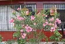 夹竹桃,又名红花夹竹桃、欧洲夹竹桃,是夹竹桃科夹竹桃属的一种常绿直立大灌木,枝条灰绿色,含水液。叶披针形,3叶轮生。聚伞花序顶生,花冠粉红至深红色,花冠漏斗状,有特殊香味。蓇葖果,圆柱形。种子长圆形,…全部>>
