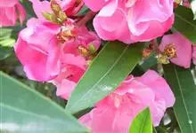 夹竹桃,又名红花夹竹桃、欧洲夹竹桃,是夹竹桃科夹竹桃属的一种常绿直立大灌木,枝条灰绿色,含水液。叶披针形,3叶轮生。聚伞花序顶生,花冠粉红至深红色,花冠漏斗状,有特殊香味。蓇葖果,圆柱形。种子长圆形,…全部>>