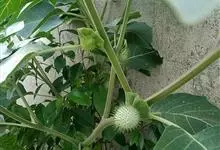 曼陀罗,茄科曼陀罗属一年生大型草本植物,全株光滑。有臭气;叶呈广卯形,边缘具不规则波状浅齿裂;花单生于枝杖间或叶腋,直立,有短梗;花萼是筒状裂片三角形,颜色为白色或淡紫色;果实为蒴果卵状,…全部>>