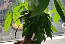 瓜栗 Walp. ),俗称发财树,木棉科小乔木,高4-5米,树冠较松散,幼枝栗褐色,无毛。小叶具短柄或近无柄。花单生枝顶叶腋;花梗粗壮,被黄色星状茸毛,脱落;萼杯状,近革质;花瓣淡黄绿色,狭披针形…全部>>