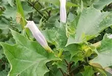 曼陀罗,茄科曼陀罗属一年生大型草本植物,全株光滑。有臭气;叶呈广卯形,边缘具不规则波状浅齿裂;花单生于枝杖间或叶腋,直立,有短梗;花萼是筒状裂片三角形,颜色为白色或淡紫色;果实为蒴果卵状,…全部>>