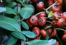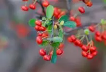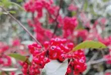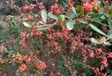 火棘 H. L. Li)是蔷薇科火棘属常绿灌木,老枝呈暗褐色;叶片呈倒卵形,边缘有钝锯齿,齿尖向内弯,两面皆无毛;叶柄短,无毛或嫩时有柔毛;花序是复伞房状,花瓣呈白色近圆形;果球近圆形,…全部>>