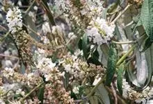 白背枫,马钱科醉鱼草属植物,常绿小灌木,高1-1.5米。嫩枝条四棱形,老枝条圆柱形;叶对生狭椭圆形或披针形,绿色无毛;总状花序窄而长,花冠芳香白色或淡绿色;蒴果椭圆状;种子灰褐色;花期1-10月,…全部>>