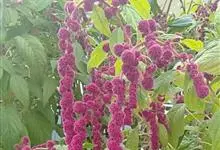 千穗谷一年生草本;茎绿色或紫红色,分枝,无毛或上部微有柔毛。叶片菱状卵形或矩圆状披针形,具凸尖,基部楔形,无毛,上面常带紫色;叶柄无毛。圆锥花序顶生,直立,圆柱形,不分枝或分枝,由多数穗状花序形成,…全部>>