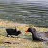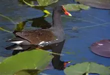 黑水鸡:是鹤形目、秧鸡科的鸟类,共有12个亚种。中型涉禽,体长24-35厘米。嘴长度适中,鼻孔狭长;头具额甲,后缘圆钝;嘴和额甲色彩鲜艳。翅圆形,第2枚初级飞羽最长,或第2枚和第3枚初级飞羽等长,…全部>>