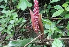 花叶山姜,为姜科,山姜属多年生草本植物,无地上茎;根茎平卧。叶片椭圆形,长圆形或长圆状披针形,长达可达15厘米,叶面绿色,叶背浅绿;两面均无毛,叶舌短,叶鞘红褐色。总状花序自叶鞘间抽出,花对生,花萼…全部>>