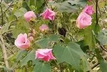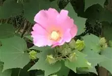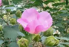 木芙蓉,锦葵科木槿属落叶灌木或小乔木。小枝上有细绒毛;叶片为卵状心形,托叶为披针形,常早落;花单生,花萼为钟形,花冠初为白色或淡红色,后逐渐变为深红色;果实为扁球形,有淡黄色的毛附着。花期8到10月。…全部>>