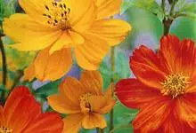 黄秋英是菊科秋英属的一年生草本植物。枝叶为对生的二回羽状复叶,裂片呈披针形;花为舌状花,有单瓣和重瓣两种,颜色多为黄、金黄、橙色,红色;瘦果棕褐色,粗糙有毛,顶端有细长喙;春播花期6-8月,…全部>>