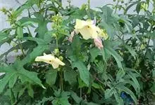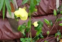 黄葵是锦葵科秋葵属的一年生或二年生草本植物。植株高1-2米,被粗毛;叶通常掌状深裂,裂片披针形至三角形,边缘具不规则锯齿,偶有浅裂似械叶状,两面均疏被硬毛,叶柄疏被硬毛;花单生于叶腋间,…全部>>