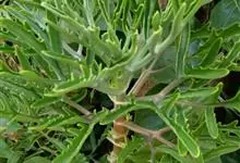 伽蓝菜是景天科伽蓝菜属植物。多年生草本,高20-100厘米。叶对生,中部叶羽状深裂,全长8-15厘米,裂片线形或线状披针形。聚伞花序排列圆锥状,长10-30厘米;苞片线形。花期3月。…全部>>