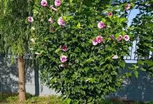 木槿,锦葵科木槿属落叶灌木,高3-4米,小枝密被黄色星状绒毛。叶菱形至三角状卵形,具深浅不同的3裂或不裂,先端钝,基部楔形,边缘具不整齐齿缺,下面沿叶脉微被毛或近无毛;托叶线形。花单生于枝端叶腋间,…全部>>
