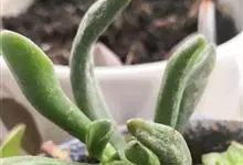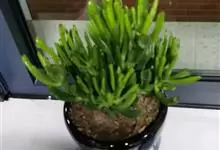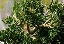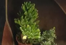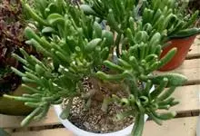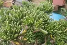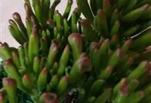 筒叶花月,是景天科青锁龙属的多年生草本植物。植株多分株,灌木状,茎较粗壮,圆柱形,表皮灰褐色;叶片肉质,互生,呈圆筒状,簇生于茎或分枝顶端,叶端呈斜截形,截面为椭圆形;花呈星状,淡白色;花期秋季。…全部>>