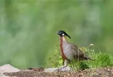 红腹角雉属于鸡形目雉科,雄鸟体羽及两翅主要为深栗红色,满布具黑缘的灰色眼状斑,下体灰斑大而色浅。雌鸟上体灰褐色,下体淡黄色,杂以黑、棕、白斑。全部>>