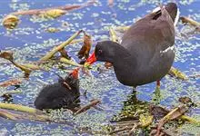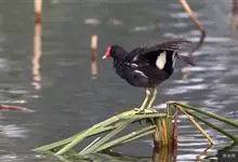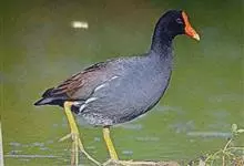 黑水鸡:是鹤形目、秧鸡科的鸟类,共有12个亚种。中型涉禽,体长24-35厘米。嘴长度适中,鼻孔狭长;头具额甲,后缘圆钝;嘴和额甲色彩鲜艳。翅圆形,第2枚初级飞羽最长,或第2枚和第3枚初级飞羽等长,…全部>>