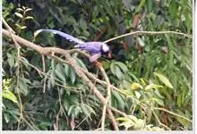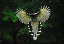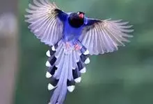 台湾蓝鹊:体长64至65厘米,翼展18至21厘米,尾长约40厘米,尾羽长占了总体长的三分之二。头、脸、颈、喉、胸都是黑色,黄色的眼珠包围黑色的瞳孔,鲜红色的鸟喙、双脚,…全部>>