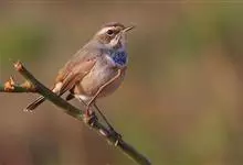 蓝点颏亦称“蓝喉歌鸲”,通称蓝靛颏儿。身体大小和麻雀相似,体长12-13厘米,体重17-18克。头部、上体主要为土褐色。眉纹白色。尾羽黑褐色,基部栗红色。颏部、喉部辉蓝色,下面有黑色横纹。下体白色。…全部>>