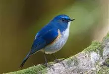 红胁蓝尾鸲俗名:蓝点冈子、蓝尾巴根子、蓝尾杰、蓝尾欧鸲。体型略小而喉白的鸲。特征为橘黄色两胁与白色腹部及臀成对比。雄鸟上体蓝色,眉纹白;亚成鸟及雌鸟褐色,尾蓝。…全部>>