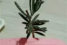 棒叶落地生根是景天科、落地生根属植物。茎直立、粉褐色。叶圆棒形,上表面有沟、粉色,有红褐斑。叶片交互对生,交叉排列成十字形。叶端锯齿上长有很小的幼株、落地后即可生根成活。原产非洲马达加斯加。…全部>>