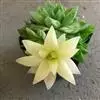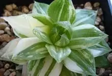 京之华锦是独尾草科瓦苇属的一种植物。也叫凝脂菊,为京之华的斑锦变异品种,植株群生,扁棒状三角形肉质叶排成莲座状,叶表平展,背部隆起,全叶有黄色或白色纵向缟纹,少数叶整片都呈黄色或白色。株型小巧,…全部>>