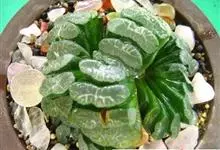 白银寿Haworthia emelyae var.emelyae Poelln.,中文惯称白银寿,是小型多肉植物,原产于南非开普省。肉质叶呈莲座状排列,叶色深绿或红褐色,顶端二角形,稍凸起,透明,…全部>>