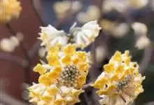 结香是瑞香科结香属落叶灌木。又名岩泽兰、三桠皮、三叉树、蒙花、山棉皮等。高约0.7-1.5米,小枝粗壮,褐色,常作三叉分枝,幼枝常被短柔毛;叶在花前凋落,长圆形,披针形至倒披针形,先端短尖,…全部>>