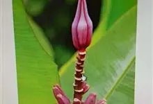 台湾芭蕉 Hayata),大形多年生草本,高约2公尺以上,根茎着生多数肉质状根,侧生小茎可供繁殖。假茎由叶鞘紧包成圆柱形,顶端叶片多枚,叶柄长而粗大,内面沟状,背面圆形突起,延伸至叶片末端,叶片巨大…全部>>