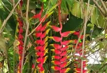 金嘴蝎尾蕉:芭蕉科,蝎尾蕉属多年生草本植物。株高可达6米。叶片长圆形,叶面绿色,叶背亮紫色;顶生花序,直立,薄被短柔毛;苞片绿色,开放时突露,花被片红色,顶端绿色,狭圆柱形,果三棱形,灰蓝色,有种子…全部>>