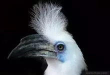 花冠皱盔犀鸟雄鸟体长约105厘米,雌鸟较小。尾白,雄雌两性的背、两翼及腹部均为黑色,但雄鸟头部奶白色,枕部具略红的丝状羽,裸出的喉囊上具明显的黑色条纹。雌鸟头颈黑,喉囊蓝色。成对或小群飞于森林上空,…全部>>