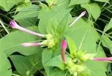 即紫茉莉,英文名:Four-o'clock,Marvel of Peru,为紫茉莉科、紫茉莉属多年生草本植物,一年生栽培。株高50~80cm。根粗壮,茎多分枝而散生。叶对生,卵形或心脏形。花数朵簇生…全部>>