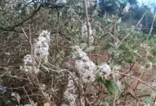 白背枫,马钱科醉鱼草属植物,常绿小灌木,高1-1.5米。嫩枝条四棱形,老枝条圆柱形;叶对生狭椭圆形或披针形,绿色无毛;总状花序窄而长,花冠芳香白色或淡绿色;蒴果椭圆状;种子灰褐色;花期1-10月,…全部>>